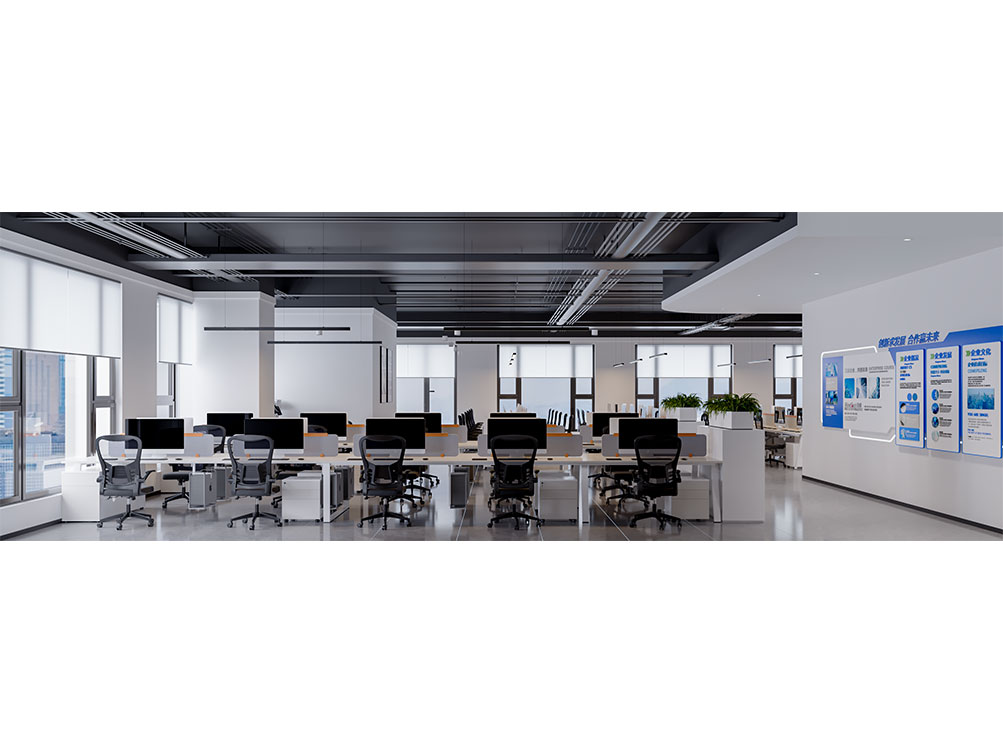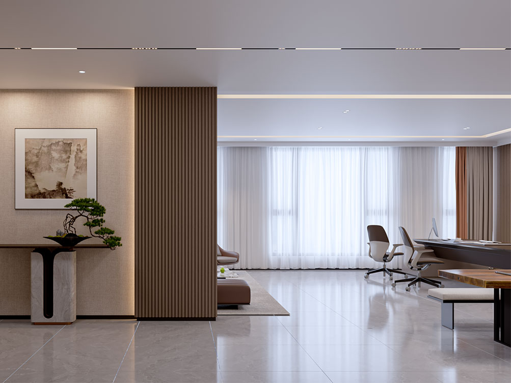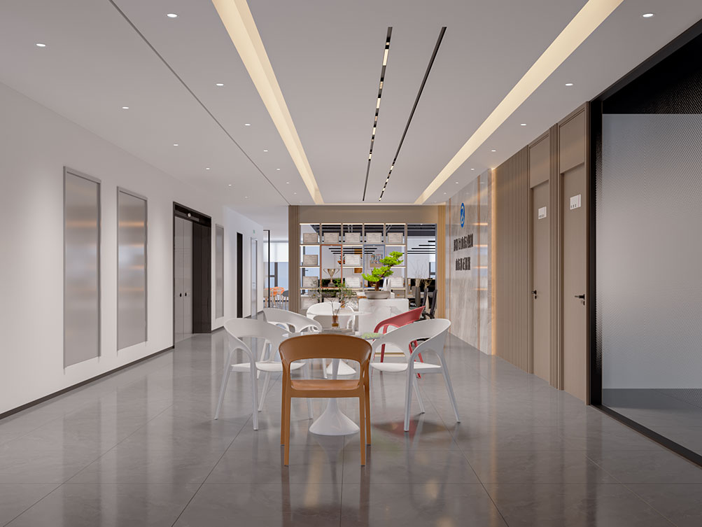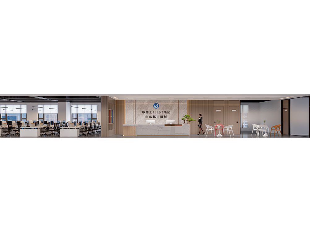 山東邦正機械設備有限公司裝修效果以 “工業基因 + 現代辦公” 為核心,前臺接待區用深灰石材背景墻搭配金屬 LOGO 與機械零件擺件,傳遞專業硬核的品牌形象;該辦公室裝修是采用模塊化工位設計,開放區域以淺色調與機械主題裝飾畫營造高效氛圍,獨立辦公室則通過木飾面與人體工學家具提升舒適感;展示區設抬高式產品陳列空間與軌道射燈,搭配電子屏及榮譽展示墻,直觀呈現企業實力;配套的茶水間與不同規格會議室,兼顧員工休閑與商務需求,整體實現品牌屬性、實用功能與舒適體驗的統一。