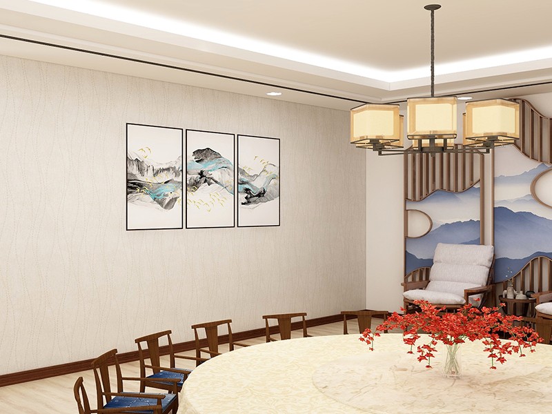 設計理念: ??中鐵二十一局集團軌道交通工程有限公司員工餐廳裝修設計施工以自然、溫馨為主題,整體色調偏暖色,營造出一種舒適愉悅的用餐環境。店內運用了中式風格作為裝飾,展現出具有古老文化質樸的氛圍。使用柔和的照明設計,如暖色調的吊燈,更是為用餐環境增添了一份溫馨感。